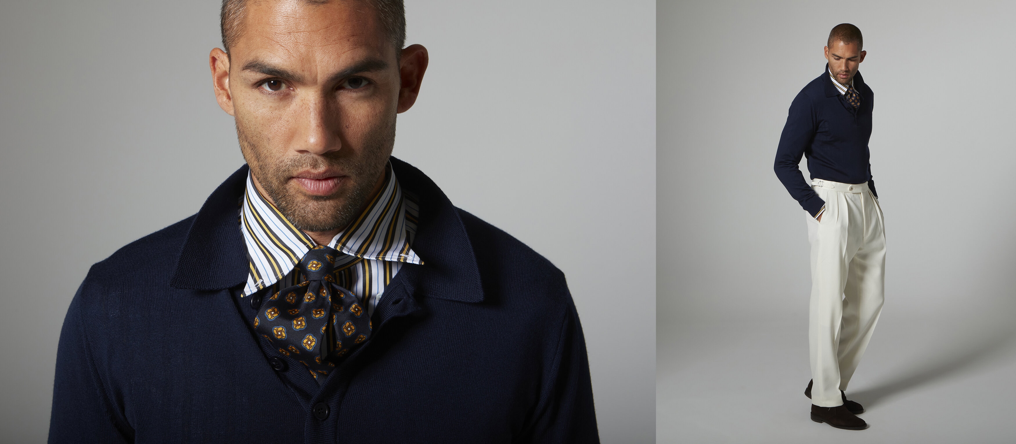 To celebrate our 125th anniversary, we have partnered with Creative Director, Mathias le Fèvre, to create a special capsule collection for Autumn/Winter 2024. A fusion of our own design ethos and the independent vision of Mathias. Each piece in the collection is based on traditional heritage cuts and paired with nostalgic references to the golden ages of style.